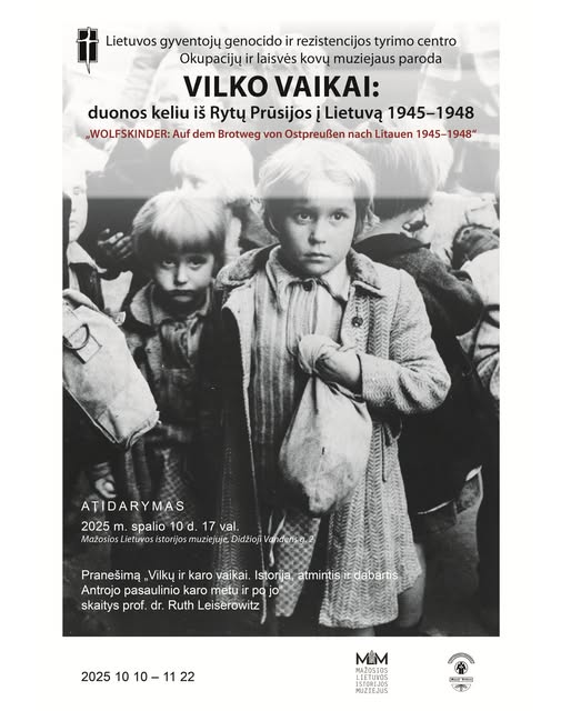 Am 10. Oktober um 17 Uhr wird im Museum für die Geschichte Kleinlitauens (Didžioji Vandens g. 2, Klaipėda) die vom Zentrum für die Erforschung des Völkermords und des Widerstands in Litauen und vom Museum für Besatzung und Freiheitskämpfe vorbereitete Ausstellung „Die Wolfskinder: Der Weg des Brotes von Ostpreußen nach Litauen 1945–1948” eröffnet. Die Ausstellung ist bis zum 22. November zu sehen.